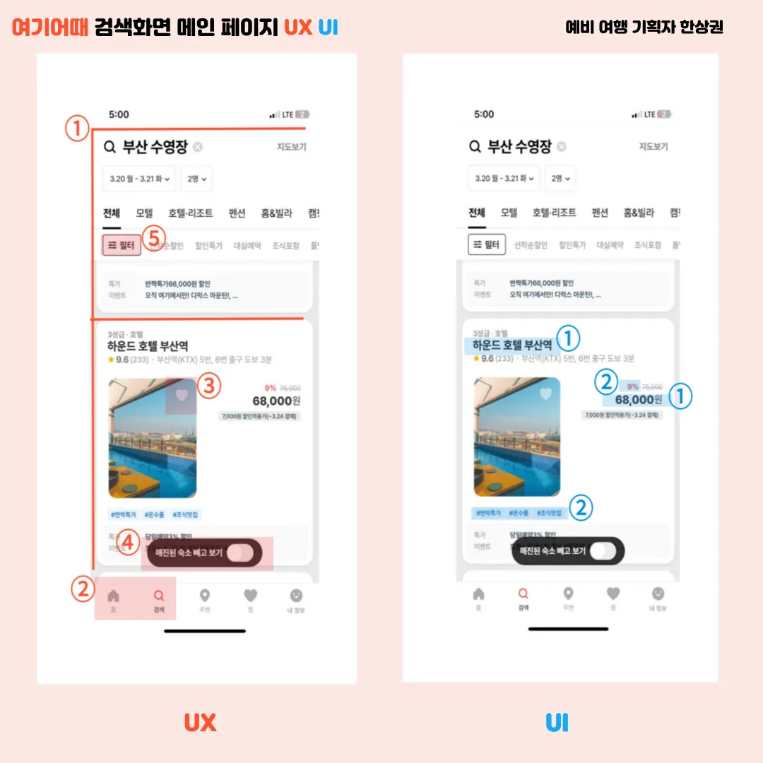 여기어때하면 강력한 경쟁자 야놀자가 생각났기에 대한민국 대표 숙박 플렛폼으로 거듭나기 위해서 어떠한 차별점 있는 길을 걸어왔는지 궁금했고, 미리 직접 기획자가 되어 나만의 색을 여기어때에 입혀보고 싶었다.