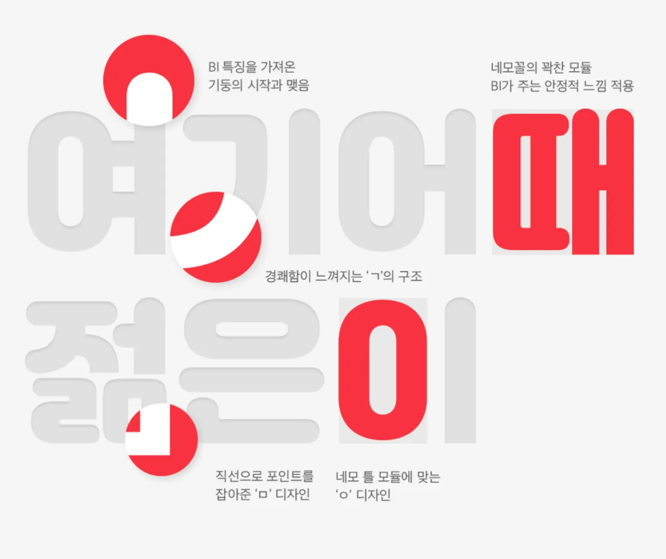 서체를 굵게 디자인 하여 가시성을 잡았고, 각지지 않게 만들어 젊음의 이미지를 표현했다.