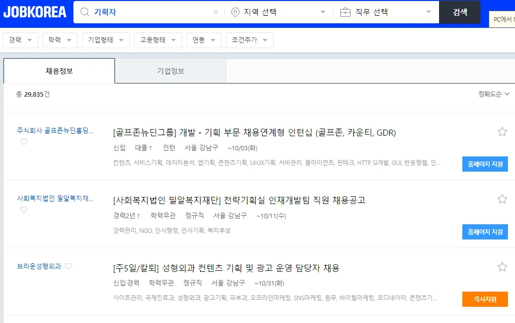 기획자는 매달 약 만명을 뽑고 있습니다!